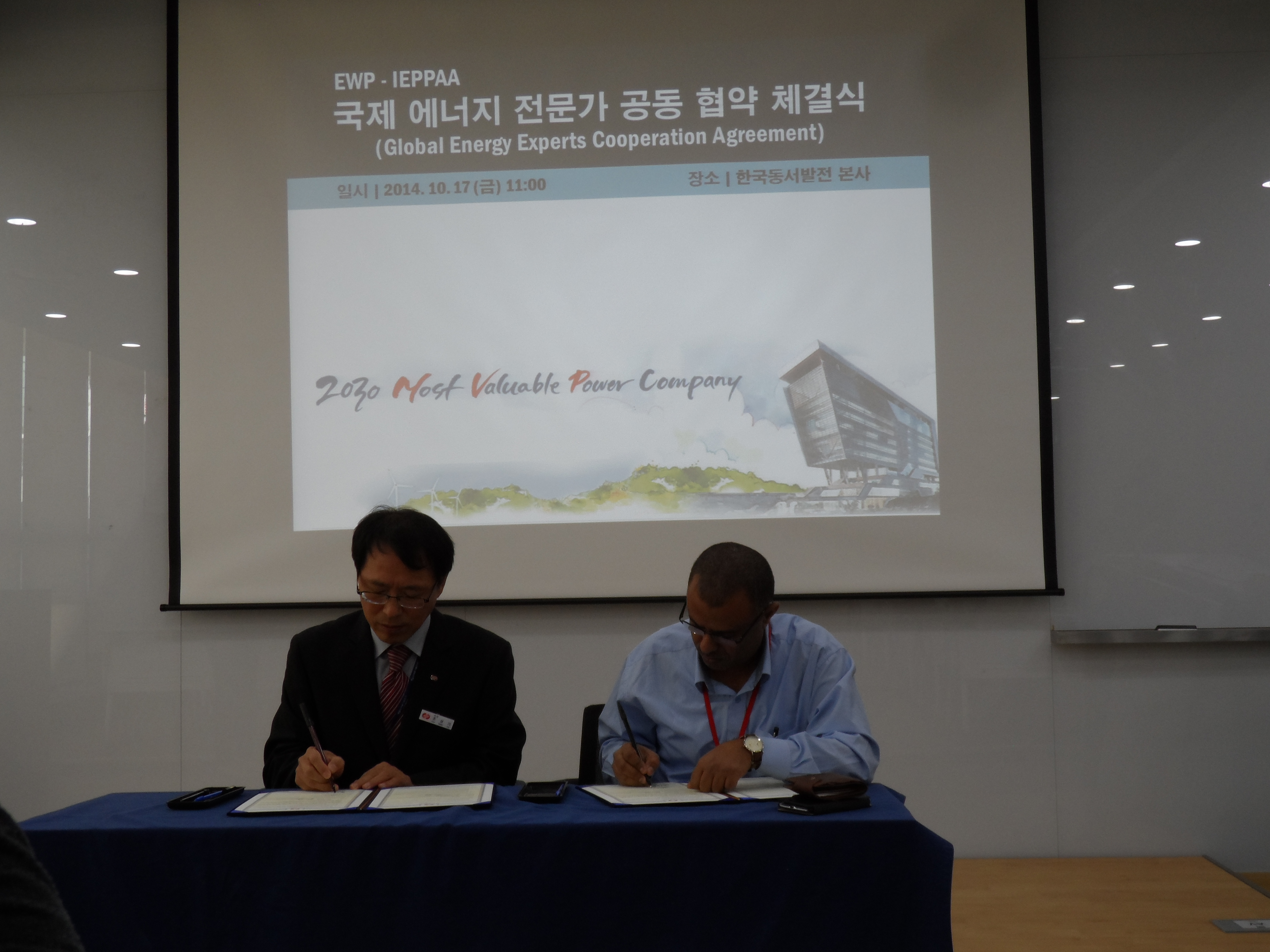 We had "Global Energy Experts Cooperation Agreement" signing ceremony between IEPPAA and EWP(Korea East-West Power Company) in 27th October, 2014.